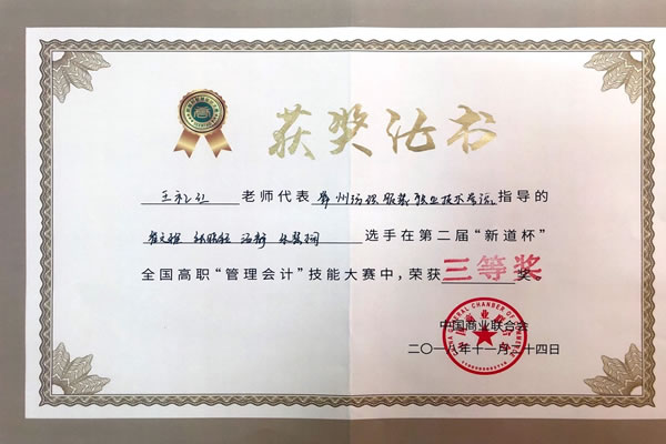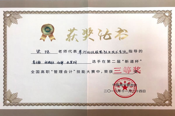 我校经贸学院从9月初开始组队,积极训练,并在9月底的初赛中突围,成功晋级总决赛。在大赛指导过程中,王礼红、梁栋两位指导老师精心制定比赛训练方案,主动放弃周末休息时间,为参赛学生补习知识和技能。最终在总决赛中,我校选手与来自全国各地高职院校的选手同台竞技,并最终取得三等奖的好成绩。
