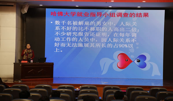 此外,南京信息职业技术学院心理健康教育研究与服务中心主任陶爱荣应邀来校开展了一场名为“轻松交往、快乐生活”的讲座。学院心理协会会员、心理保健员、全体宿舍长、成长训练营营员聆听了讲座。