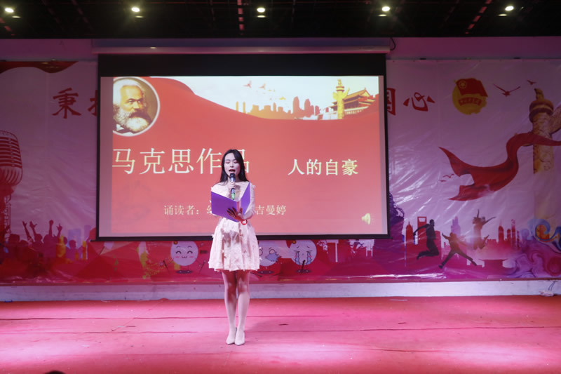 大赛旨在展现大学生青春风貌,弘扬爱国情怀,宣扬红色精神、红色文化。经过前期选拔,共有12名同学进入决赛。决赛共分模拟主持、经典诵读、即兴评述3个环节,全面考察选手的舞台形象、咬字发音、情感投入、舞台表现、临场反应、语言组织等各方面的能力,同时通过诵读马克思作品,让全场的同学们再次学习了红色文化。