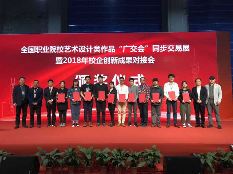 12月21日至23日,由教育部职业院校艺术设计类专业教学指导委员会主办的全国职业院校艺术设计类作品“广交会”同步交易展暨2018年校企创新成果对接会,在广州琶洲.国际采购中心1号展馆隆重举行。我校创意学院和服装学院选送了90多件作品,30多件作品分获不同奖项,其中一等奖6个、二等奖7个、三等奖19个。