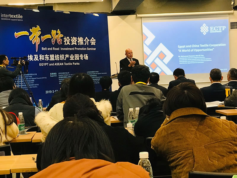 3月12日下午,由中国纺织工业联合会国际贸易办公室、中国纺织国际产能合作企业联盟等共同举办的“一带一路”投资推介会在国家会展中心(上海)举办。会议特邀了埃及工业联合会对外贸易委员会默罕默德-卡森姆主席等为中国纺织服装企业解读埃及和东盟纺织园区的投资政策与环境。应江苏省服装协会邀请,我校领导贺仰东、纺织学院院长陶丽珍、国际学院杨善江参加了投资推介会和新闻发布会。