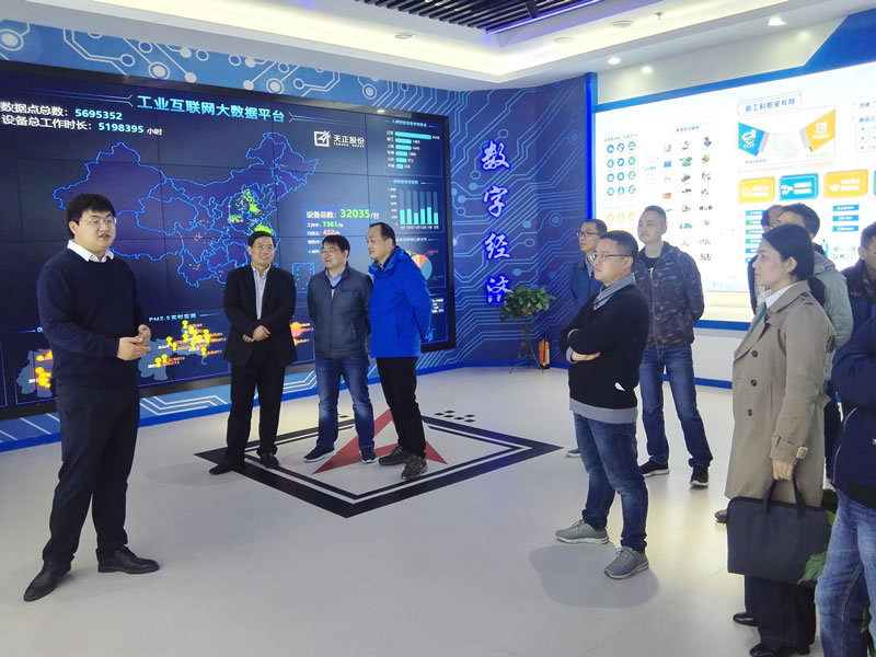 张文明一行首先听取了天正工业发展股份有限公司的发展历程及其工业大数据业务范围的介绍,随后参观了由天正股份自主研发的i-Martrix工业互联网大数据平台的工业装备数据实时采集分析的热力图及其相关经济应用介绍,了解了天正股份与新工科职业教育校企合作的主要内容及形式等。