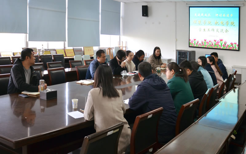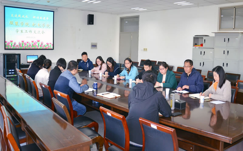 3月26日上午,机电学院学工团队一行8人在党总支副书记李丽明的带领下,与服装学院进行了学生工作交流。服装学院党总支副书记王剑及服装全体辅导员参加交流。
