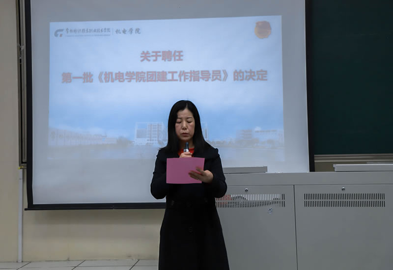 仪式上,林洁介绍了思政大讲堂设立的初衷及讲堂内容的设置,并就参与要求做了明确说明。李丽明宣读了《机电学院首批团建指导员聘任决定》。