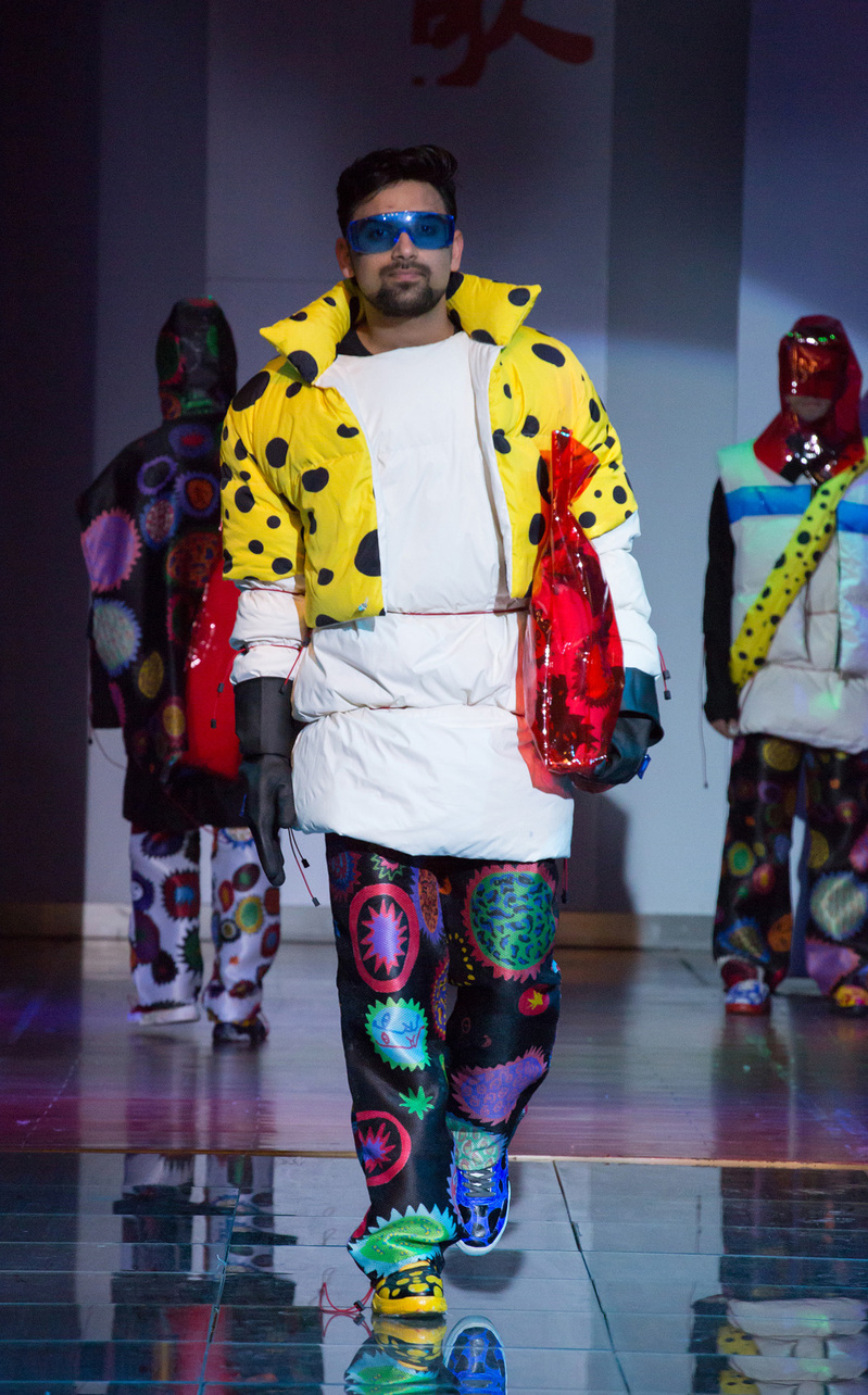 本次作品发布会共分三个主题,分别是“梦境与现实”、“几何的力量”和“梦的诱惑”。作品的色彩设计在充分考虑流行趋势的同时,注重不同材质所传达的色彩差异及感受;面料在强调质感的同时,大胆搭配使用个性的非服用材料;廓形结构在强调功能和美观结合的同时,注重剪裁及工艺的科学性,在设计上实现了一次多维立体式的碰撞,以90余套服装作品诠释了对时尚的理解与感悟。
