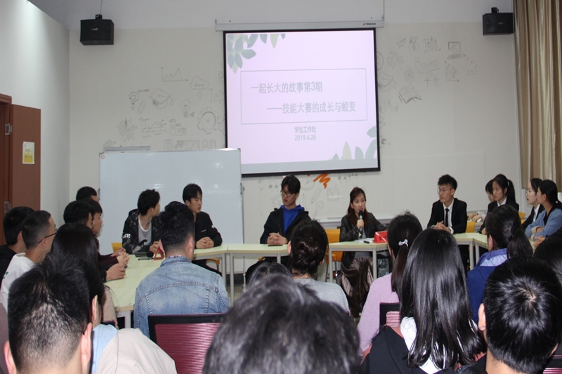 为进一步加强大学生思想政治教育,落实立德树人的根本任务,探索适合学生特点的思想政治教育方式,我校学工处于2019年4月26日下午15:30在大学生创新创业中心三楼举行了“一起长大的故事”第3期活动——技能大赛的成长与蜕变。学工处副处长乔丽娟、人文学院党总支副书记高嗣超、各二级学院学工办主任、辅导员代表、学工处老师及100名学生参加了活动。活动由学工处大学生教育与管理中心主任郑可乐主持。