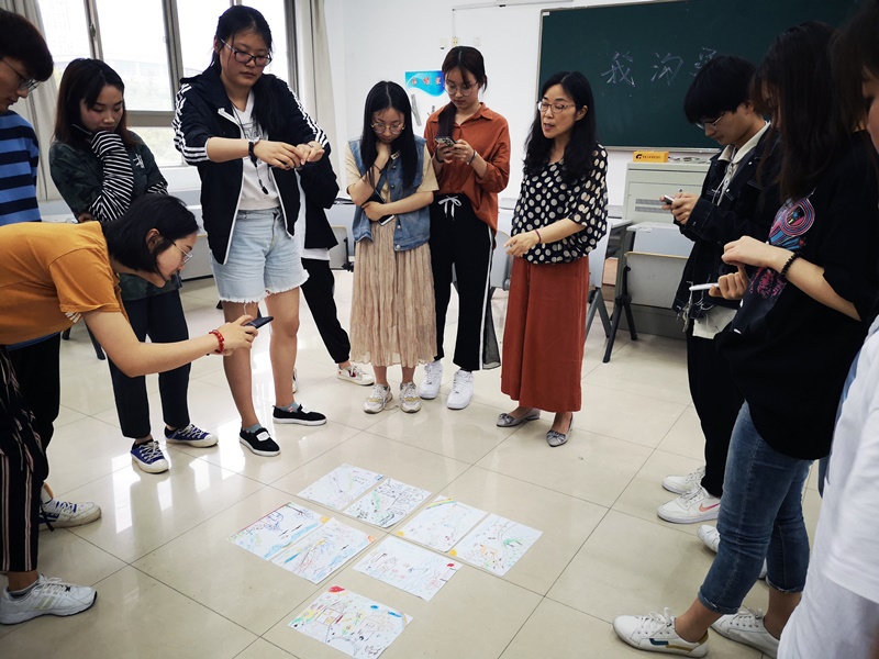 为了进一步推动心理健康教育工作,营造更加积极健康的校园氛围,促进同学们的沟通与交流,近日,服装学院特邀心理教研室主任吴美娟副教授在9202开展“我沟通 我快乐”绘画团体心理辅导活动。活动由“手指操”、“绘画接龙”、“画中乾坤”三部分组成。绘画心理团体辅导用绘画的方式代替语言,通过绘画的创作过程及作品,帮助绘画者分析其潜意识内的情感与冲突,从而达到辅导的效果。活动中,同学们通过分组轮流绘画,考验彼此的默契与合作能力,在锻炼与学习中培养了人际沟通能力。(供稿:鞠慧;审核:王剑)