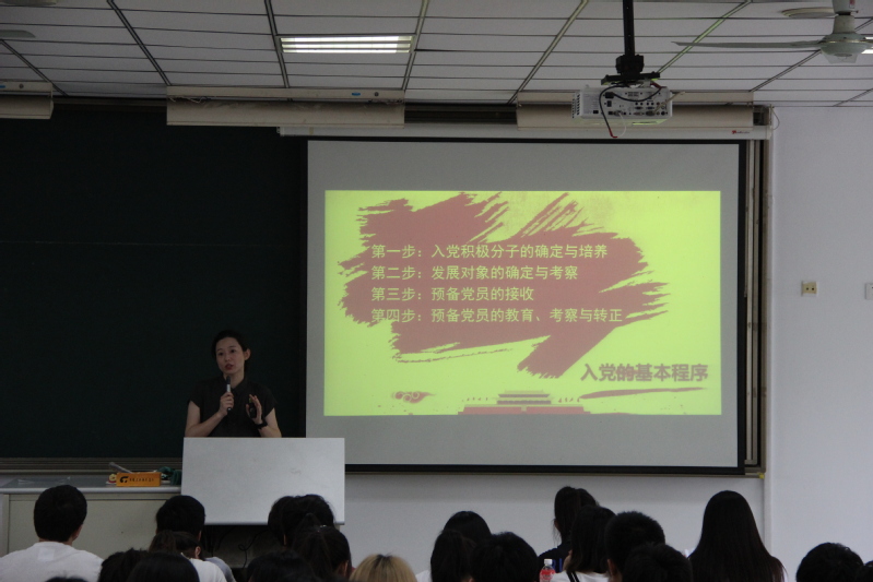 6月19日下午,人文学院党总支副书记高嗣超在9220为2019年全体入党积极分子上了一堂以“大学生入党指南”为主题的党课。她以“我为什么要加入中国共产党”这个问题作为导入,从入党的标准及条件、入党的程序两个方面详细阐述了入党的流程及要求,同时针对学生在入党过程中容易出现的疑问进行了解答,从而使在座的入党积极分子进一步明晰了入党程序,明确了入党要求,端正了入党动机,坚定了入党信念。