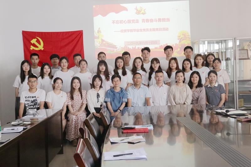 为鼓励毕业生积极投身社会,牢记党员责任,坚定理想信念,6月14日下午经贸学院2019届毕业生党员主题党日活动在4C412举行。经贸学院党总支书记糜红缨、党总支副书记乔正明,学工党支部全体党员和部分入党积极分子参加了本次活动。
