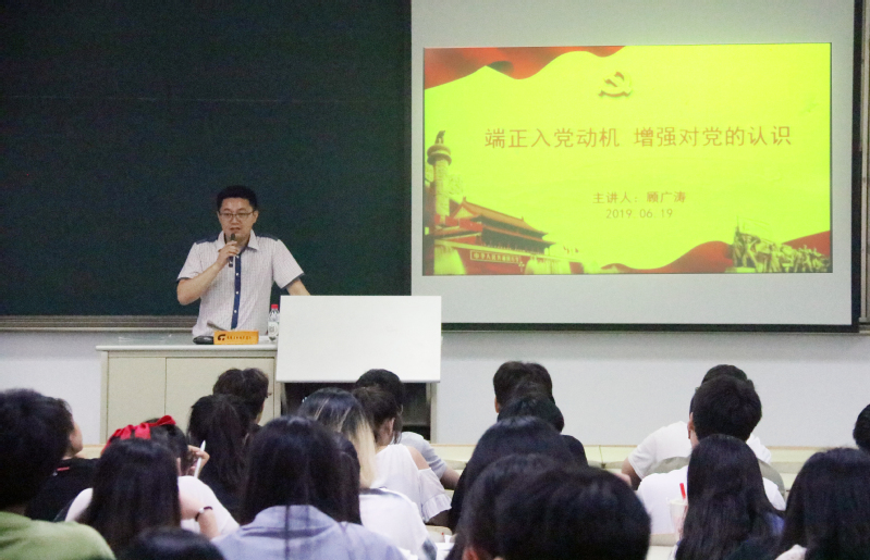 顾广涛以中国共产党诞生日与中国共产党纪念日是从何而来作为切入点,并以讲故事的形式,从“五四运动是如何爆发的”、“《共产党宣言》中译版的诞生”、“马克思主义在中国的传播”出发,讲述了那些为国家做出贡献、传播大善和大爱的个人和集体的“中国精神”代表,诠释了伟大的五四精神,勉励学员要坚定共产主义远大理想和中国特色社会主义共同理想,扎实理论、立足实践、担当尽责。顾广涛还从“入党动机与行为实践的关系”出发,要求全体学员深入思考并正确处理好“入党为什么,在党干什么,为党留什么”三个什么的关系,指引大家端正入党动机,不仅要在组织上入党,更要在思想上入党,不断修炼自身,完善自我,提升党性修养。