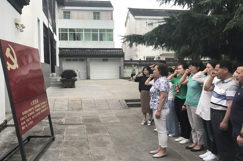 在溧阳新四军江南指挥部纪念馆,跟随讲解员的导引,党员们先后参观了将军题字碑廊、陈毅元帅和夫人张茜同志塑像、新四军江南指挥部旧址、毛泽东像章陈列馆、新四军江南指挥部史料展览馆和廉洁思想教育馆。通过馆内陈列大量珍贵的革命文物和图片史料,党员同志们重温党史,缅怀先烈,接受思想洗礼,感悟“铁军”精神。参观结束后,在党总支总书张霞的领誓下,全体党员面对党旗庄严宣誓,重温入党誓词,坚定理想信念。