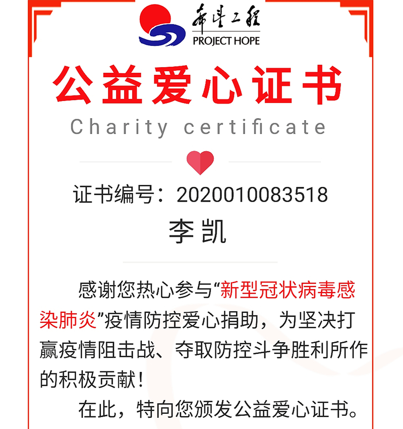 这已经不是李凯第一次参与抗疫了,2020年初在新冠肺炎病毒首次爆发,武汉疫情严重,他第一时间通过希望工程“苏青益筹”平台向武汉一线捐助了抗疫资金。后来疫情蔓延至全国多个地方,当得知一线医疗物资急剧短缺之时,看到一线人员用生命在战斗,他和妻子忧心忡忡,多方联系各种途径,最终通过国外的朋友,自费数万元高价分批从国外购得医用防护服和口罩,分别捐赠给了武汉市青山区隔离点、武汉市青山区青翠苑社区,洪山区金鹤园社区,黄石市黄石港区等等。4月,常州金坛也突然爆发疫情,听说一线卡口服务的工作人员缺乏物资,他们又购置了一批物资捐给了金坛团市委和常州纺院。2021年,为了应对未来的疫情,常州市组织试点开展全员核酸检测,得知消息后,他第一时间报名参加了新北区的志愿者,利用休息时间成为第一批全员核酸检测的工作人员,并成为小组组长。当被问及为什么会参加时?他说:“没多想,一是想利用业余时间,多做点事;二是想学习学习,看看是怎么组织、怎么测,今后说不定单位要开展了,自己也算有实战经验了”。他总希望能用自己的力量为这个国家作出一丝丝贡献。