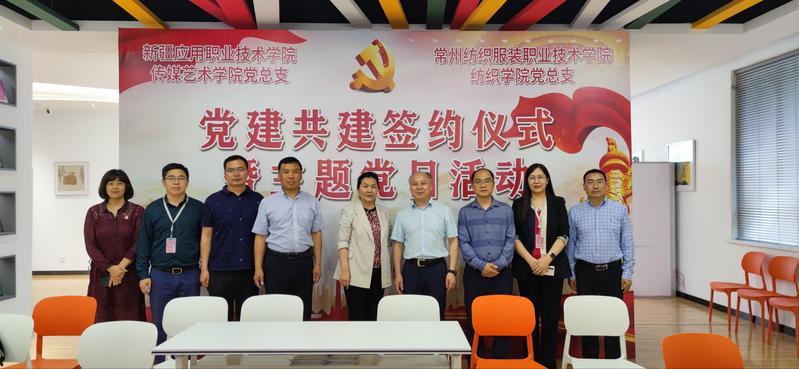 (二)党建促学院文化,汇聚橙色“活力”线。开展形式多样的党建文化传播,形成线上线下相结合的文化格局,树立了师德模范、优秀共产党员等“榜样标杆”,及时传递正能量、发挥榜样引领作用。通过“东西联合、校企联合、校社联合”构建党建共建网络,与黑牡丹纺织科室(直属)党支部、江苏旷达集团党支部、常州北庙桥社区党支部、武进纺织商会功能型党支部、新疆应用职业技术职业技术学院传媒艺术学院党总支、宁夏民族职业技术学院机电学院党总支进行基层党组织共建,实现基层党组织工作互动和资源共享,优势互补,在学习交流、人才培养、科技研发、师资建设、项目合作等方面开展合作,提升党建水平和业务水平。