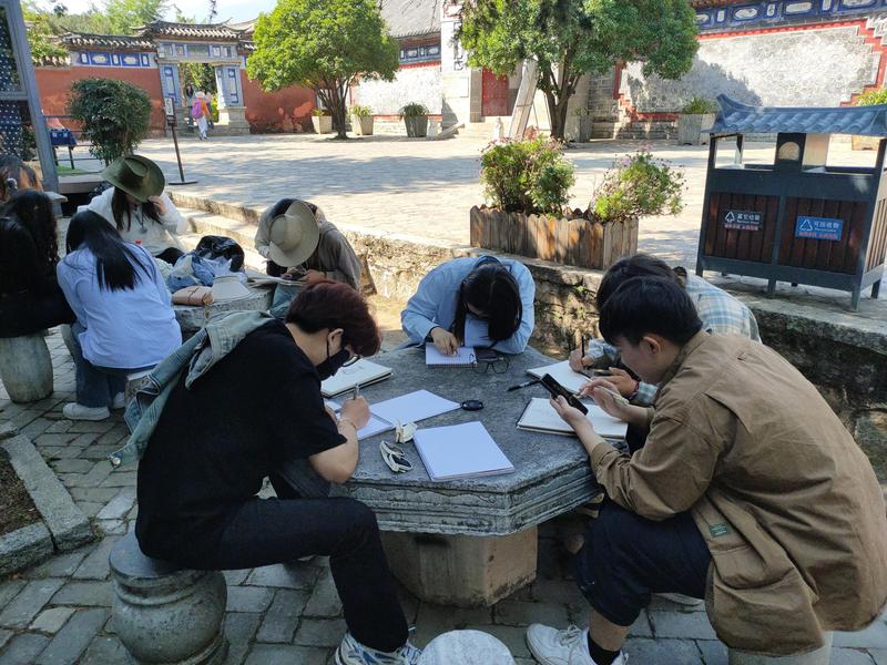 本次采风实践课以“体悟民族文化内涵,感受艺术风采”为主题,通过对云南景洪傣族寨落、丽江纳西族古镇、大理白族古镇和昆明云南民族村等民族文化艺术聚集点的调研,以速写、拍摄或收集实物等形式,引导学生深层次领略云南少数民族多姿多彩的服饰形象和丰厚的物质文化遗产,考察收集具有价值性、主观性以及文化性的多元素材,并加以创新和运用,进一步激发学生对专业的热爱,培养学生做自觉传承和弘扬中华优秀传统文化的实践者和创造者,为后续的毕业设计及未来职业发展做好充分准备。