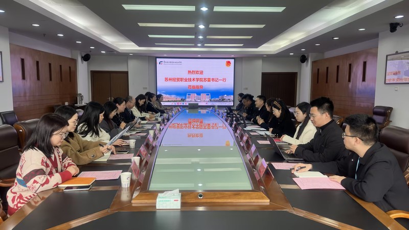 为加强校际交流互鉴,进一步促进共青团工作高质量发展,3月28日,苏州经贸职业技术学院团委书记苏雷带队到我校交流共青团工作。校团委全体成员及二级学院团委负责人参加此次交流会,会议由校团委书记朱鹏主持。