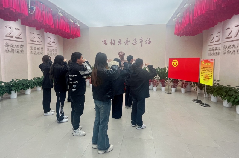 庄严肃穆的纪念馆内,大家高举右拳重温入团誓词,铿锵誓言回荡在历史长廊,彰显着新时代青年接续奋斗的坚定信念。随后,师生参观馆内珍贵史料、手迹及影像资料,缅怀追忆张太雷同志从探索真理的青年才俊到献身革命的铮铮铁骨,从“愿化作震碎旧世界惊雷”的壮志到“谋天下人永远幸福”的初心,用生命诠释信仰的炽热温度。
