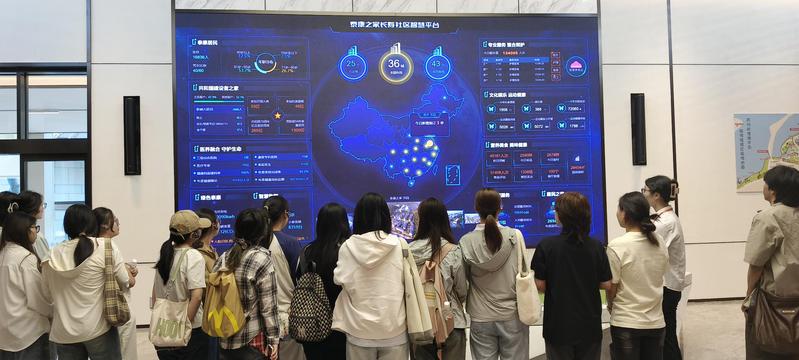 在智慧康养场景的深度体验中,师生系统考察了吴园养老社区“医养结合”、“疗愈服务”创新模式。从适老化智能家居样板间到AI健康监测系统,从认知症照护专区到沉浸式康复训练中心,特别是“健康银行”数据管理平台和远程医疗会诊系统,全景呈现了泰康在智慧养老领域的技术积淀。社区护理专家现场演示的智能辅具操作、老年人能力评估系统等数字化工具,让同学们直观感受到科技赋能养老服务的实践图景。