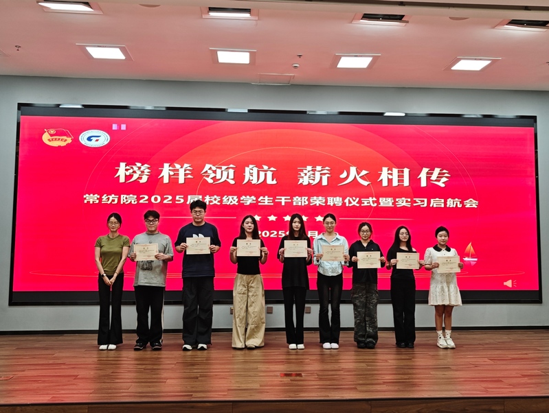 活动最后,朱鹏代表学校团委感谢这支“能吃苦肯担当”学生干部队伍为学校发展和同学成长做出的贡献,为即将启程实习的学生干部送上深切祝福和殷切期望,鼓励他们要永葆榜样精神,在实习中展现常纺学子优秀风貌;要在实习中注重实践锤炼,锻造过硬本领;要心怀“国之大者”,将个人发展融入时代洪流。期望同学们珍惜荣誉,在广阔天地书写青春华章,期待大家满载而归。