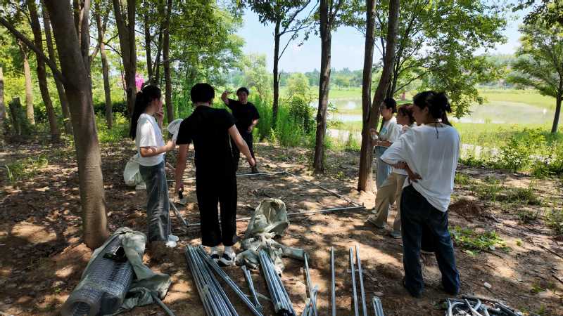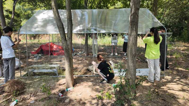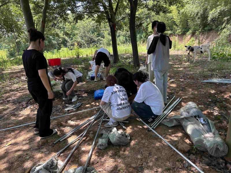尽管骄阳似火,汗水湿透了衣衫,但师生们的干劲丝毫未减。根据图纸学生们在夏先生现场指导下进行科学规范的搭建工作。学生们在实践中不断学习,从最初的生疏到逐渐熟练,每一个环节都一丝不苟。经过数小时的紧张施工,一座结构稳固、通风良好的牛棚终于顺利落成。