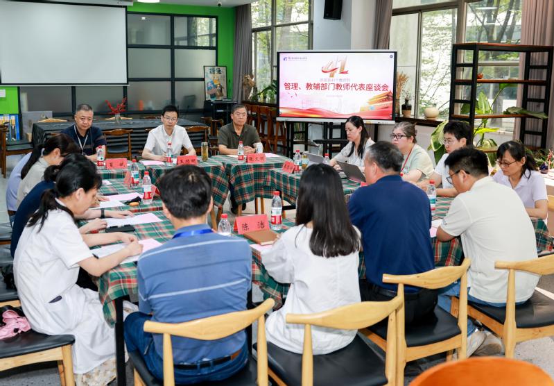 金秋送爽,桃李芬芳。在第41个教师节来临之际,9月8日下午,我校分别召开高层次人才教师代表、青年骨干教师代表以及管理、教辅部门教师代表座谈会。学校党委书记吴访升,党委副书记、校长洪霄,党委副书记王顺明,党委委员、副校长张文明,党委委员、纪委书记林素琴及党委组织部、党委宣传部、党政办公室、科技处、产教处、工会、学生处、团委、后勤部等部门负责人出席了相关座谈会,来自全校各二级单位的教师代表参会。座谈会分别由人事处处长夏冬、发规处处长赵振勇、机关党总支书记李洁琦主持。