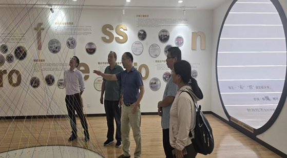 在纺织科技馆,九三学社的专家们依次参观了三大核心展区:在纺织历史与文化展区,重点了解了常州本地的乱针绣、蜡染等非遗技艺及其在现代设计中的传承与创新;在现代纺织技术展区,现场观摩了自动化络筒机、数码印花机等智能设备的运行,并深入了解了功能性与环保型纺织材料的最新应用;在校企协同育人展区,浏览了我校与行业龙头企业合作的实训成果,以及学生将非遗元素与现代科技结合的创新创业作品,如智能温控服饰、文创家纺等。