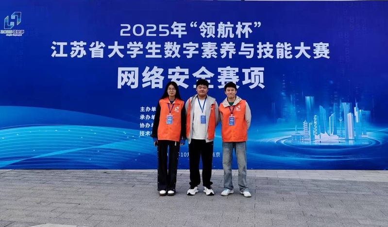 2025年10月26日,2025年“领航杯”江苏省大学生数字素养与技能大赛(主办单位:省教育厅,省委网信办)在南京邮电大学仙林校区圆满落幕,比赛包括网络安全和人工智能两个赛项。在竞争尤为激烈的网络安全赛项中,来自本科、高职院校共120支师生队伍参加竞赛。经过四个小时的激烈鏖战,我校智能制造学院信息安全专业师生凭借过硬的专业技能和出色的临场发挥,再次续写辉煌。